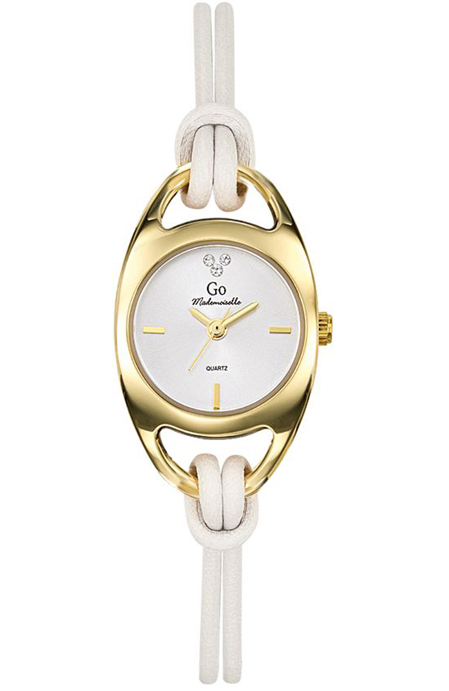 Γυναικείο ρολόι Go με λευκό καντράν και λευκό δερμάτινο λουράκι.