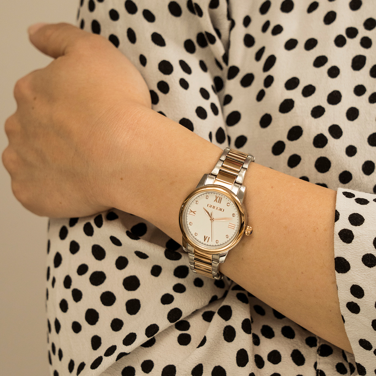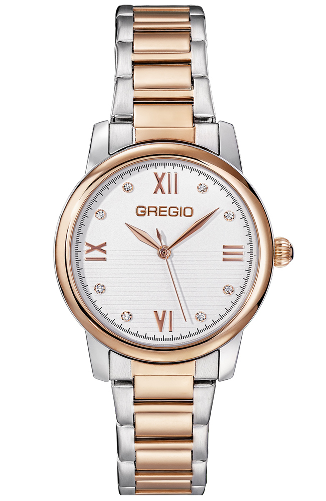 Γυναικείο ρολόι Gregio από δίχρωμο ανοξείδωτο ατσάλι με λευκό καντράν και μπρασελέ.