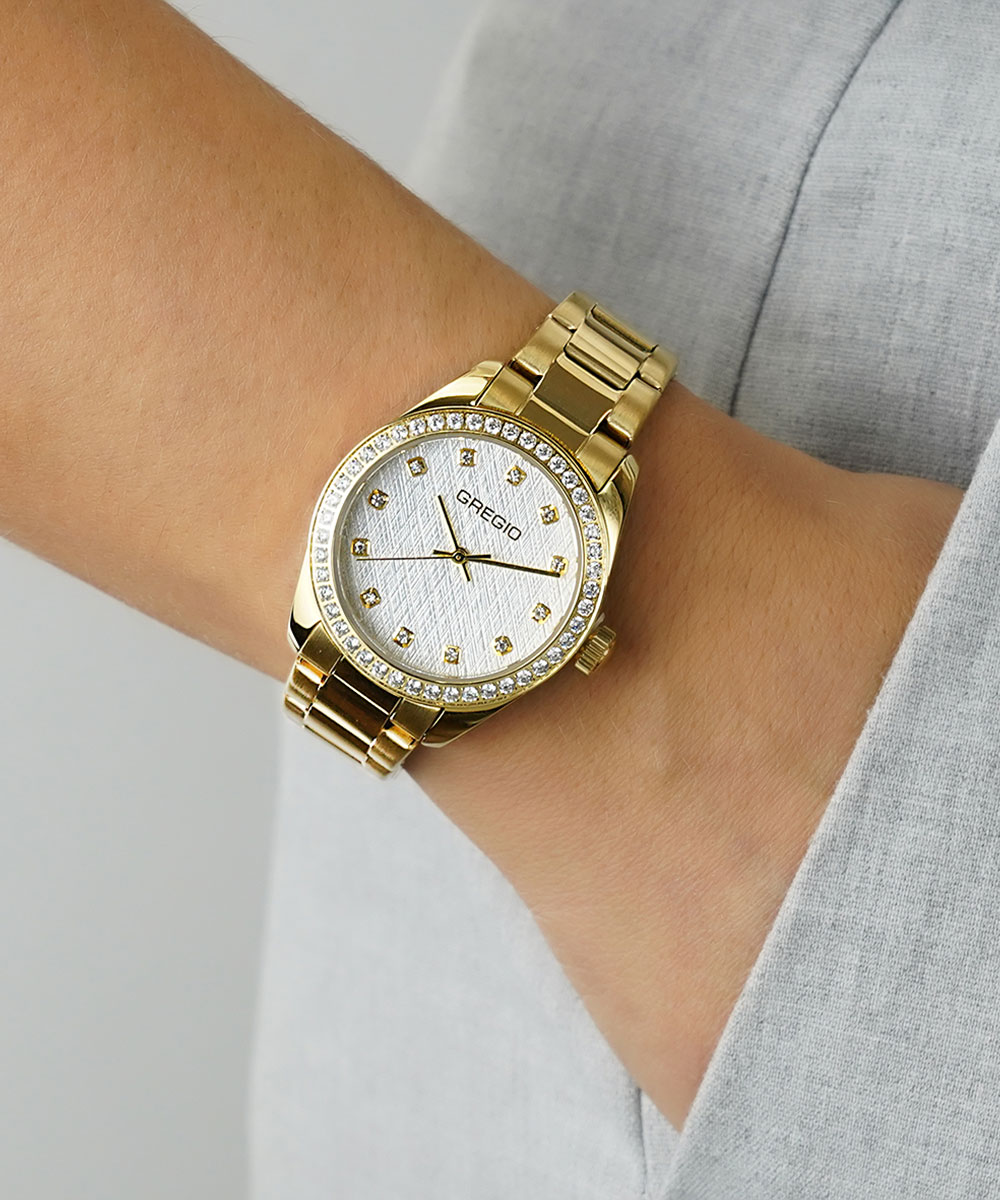 Γυναικείο ρολόι Gregio από ανοξείδωτο ατσάλι με λευκό καντράν και μπρασελέ.