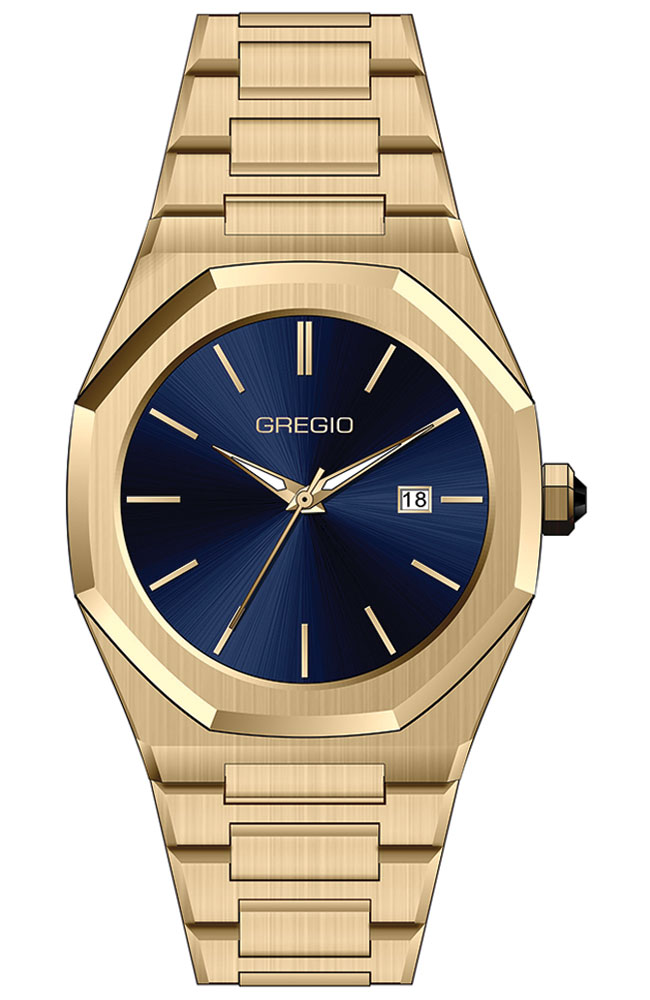 Το Gregio Octa σε χρυσό τόνο με μπλε καντράν αποπνέει πολυτέλεια και έντονη προσωπικότητα. Ο συνδυασμός χρυσού μπρασελέ και βαθύ μπλε dial δημιουργεί ένα εντυπωσιακό contrast, ιδανικό για πιο premium εμφανίσεις. Ένα ρολόι που τραβάει τα βλέμματα χωρίς υπερβολή.