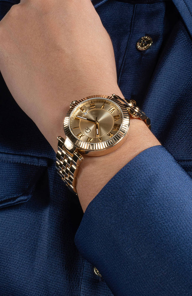 Γυναικείο ρολόι Guess Collection από επιχρυσωμένο ανοξείδωτο ατσάλι με χρυσό καντράν και μπρασελέ