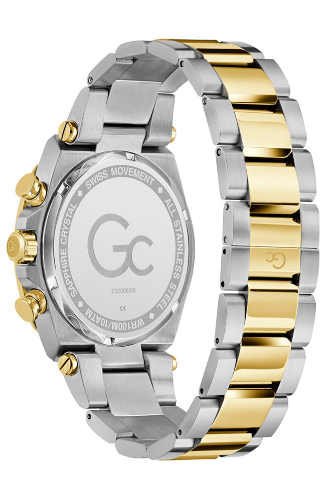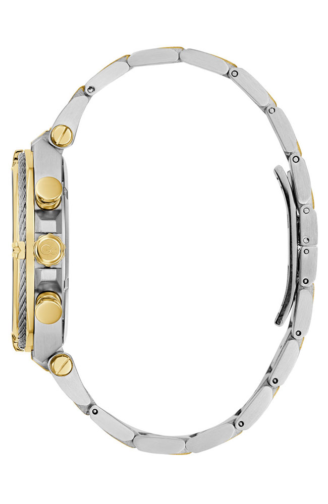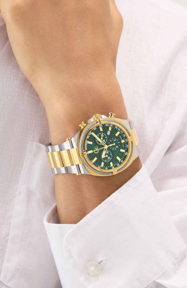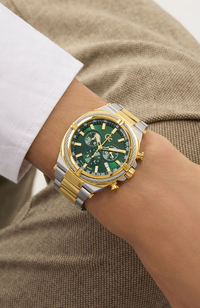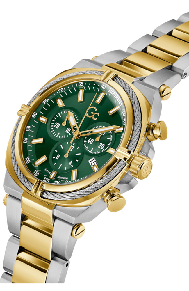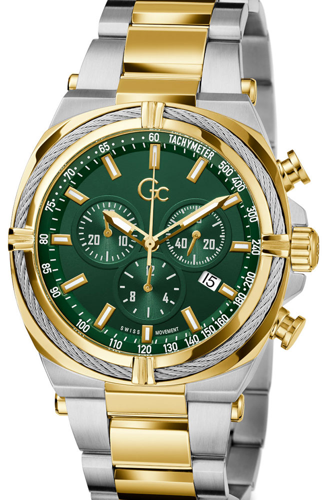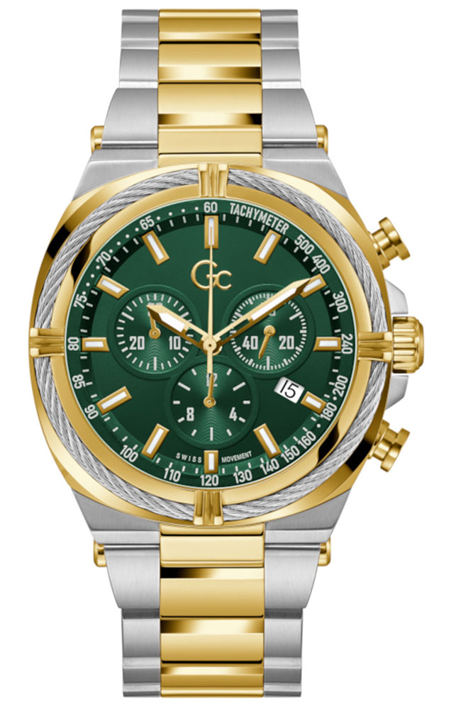 Ανδρικό ρολόι χρονογράφος Guess Collection με Ελβετικό μηχανισμό από ανοξείδωτο ατσάλι με πράσινο καντράν και δίχρωμο μπρασελέ.