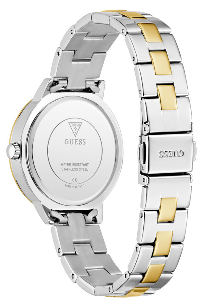 Γυναικείο ρολόι Guess από ανοξείδωτο ατσάλι με ασημί καντράν και μπρασελέ.