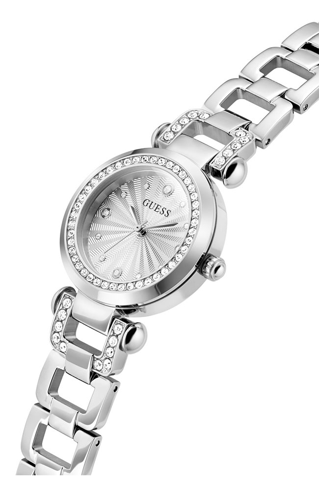 Γυναικείο ρολόι Guess από ανοξείδωτο ατσάλι με ασημί καντράν και μπρασελέ.