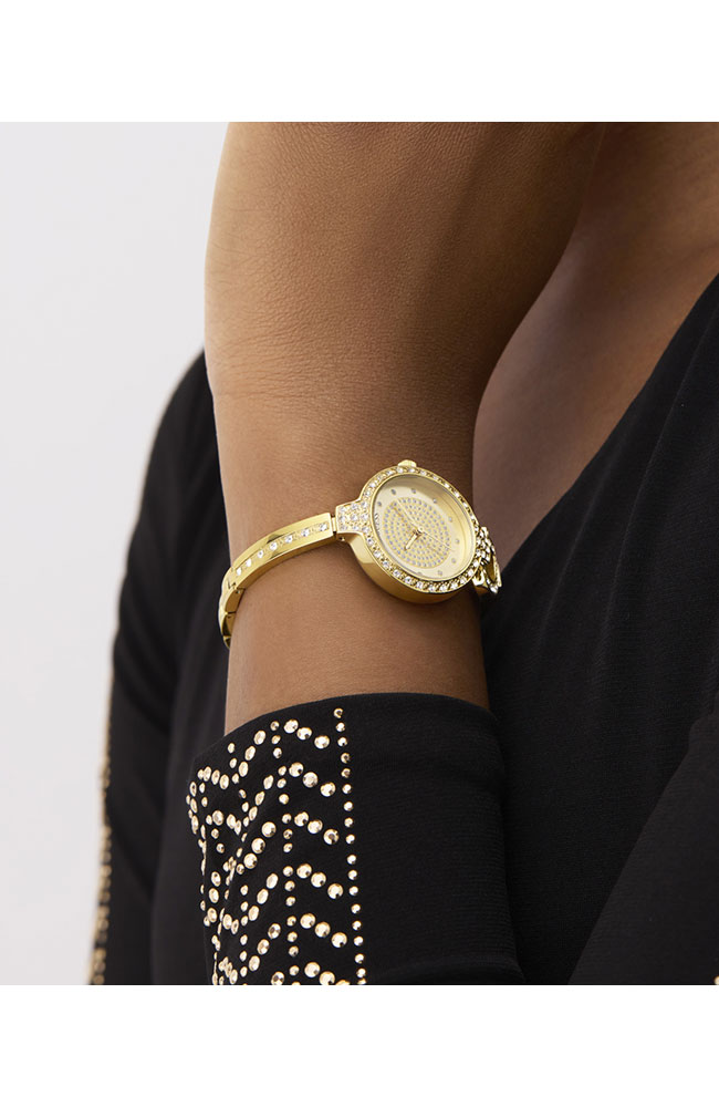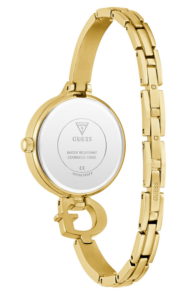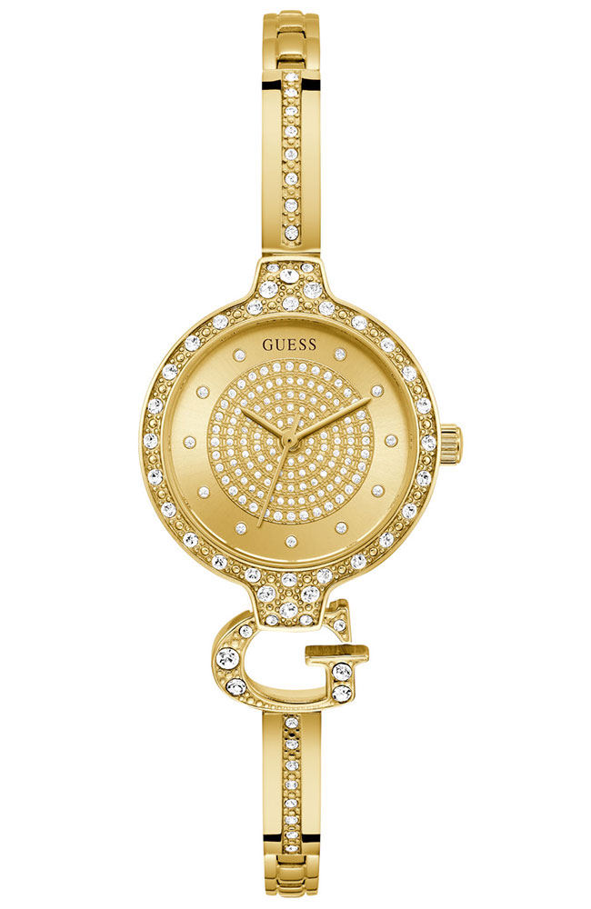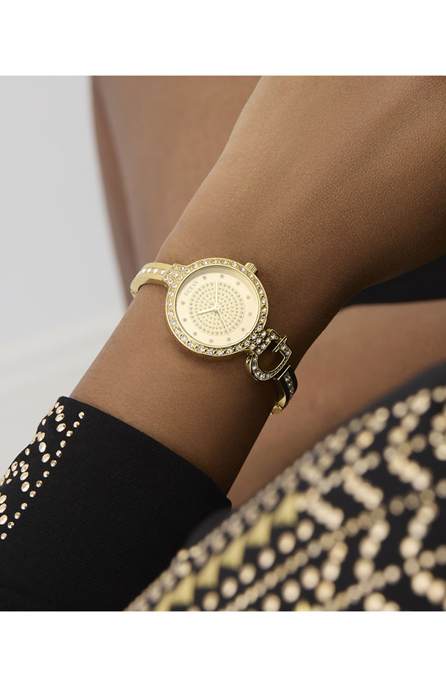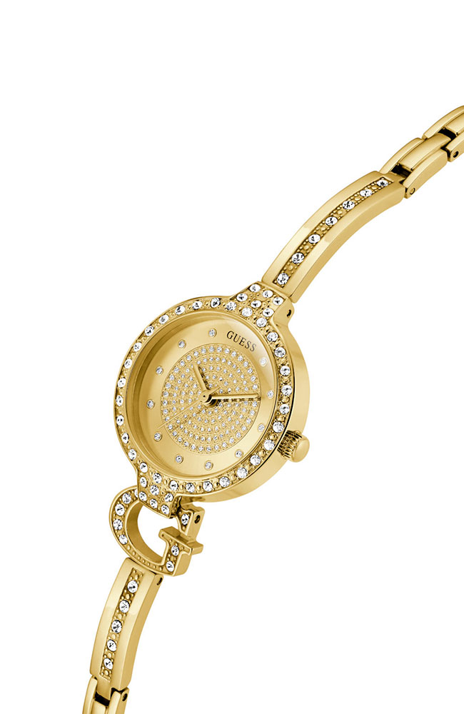 Γυναικείο ρολόι Guess από ανοξείδωτο ατσάλι με χρυσό καντράν και μπρασελέ.
