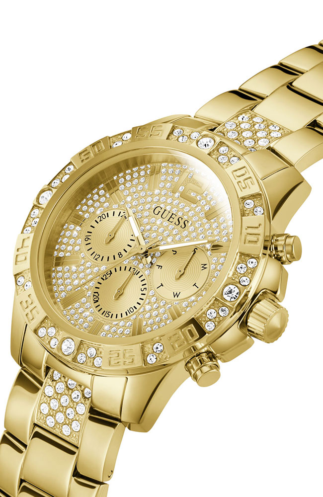 Ανδρικό ρολόι GUESS από ανοξείδωτο ατσάλι με χρυσό καντράν και μπρασελέ.