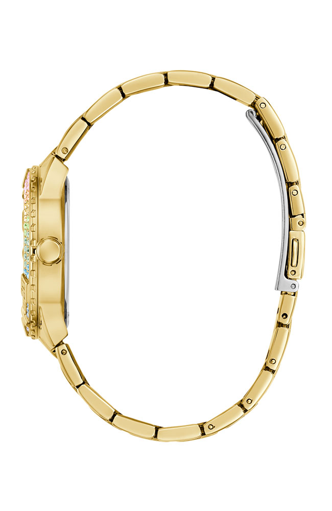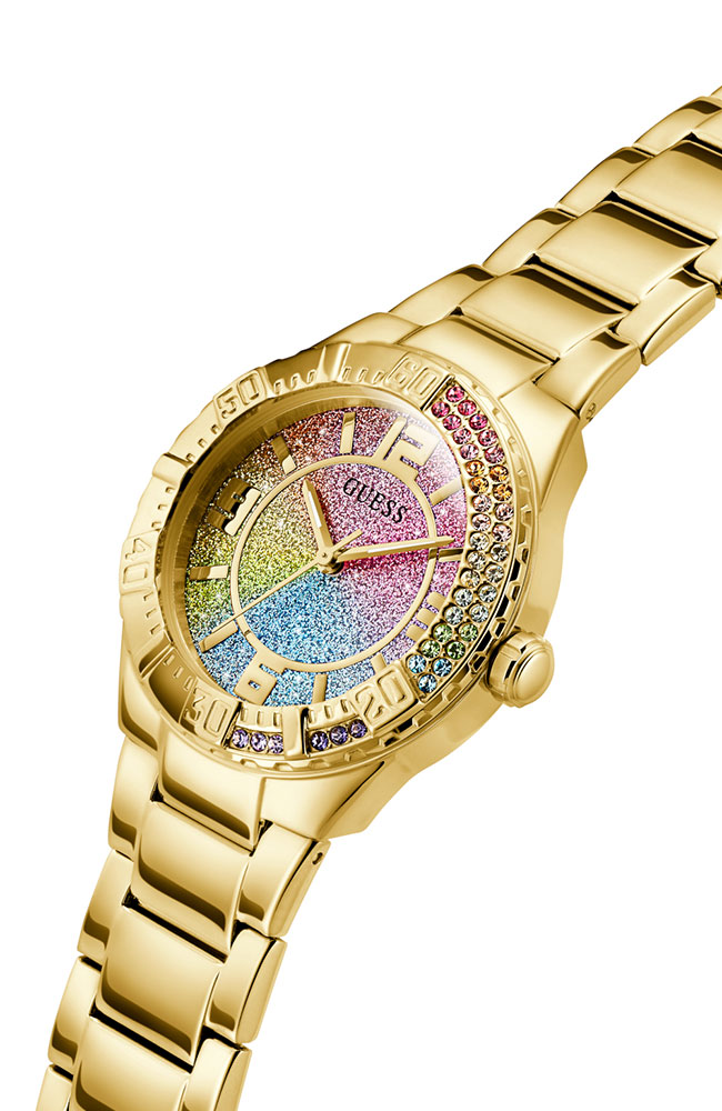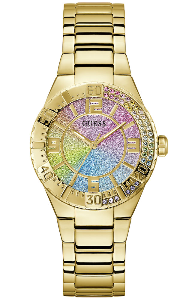 Γυναικείο ρολόι Guess από ανοξείδωτο ατσάλι με πολύχρωμο καντράν και μπρασελέ.
