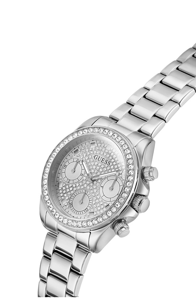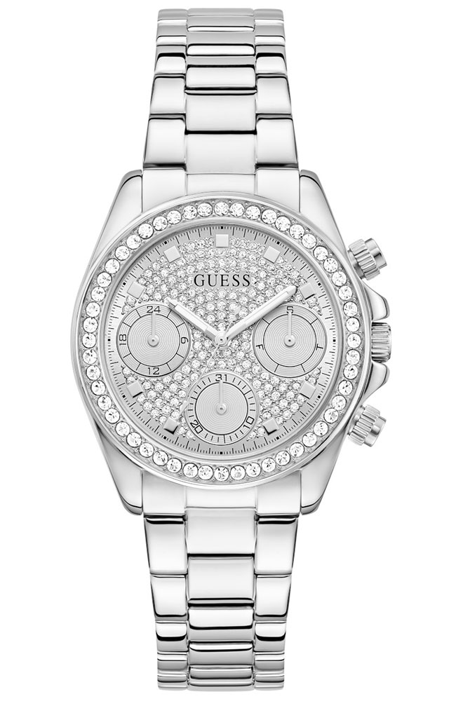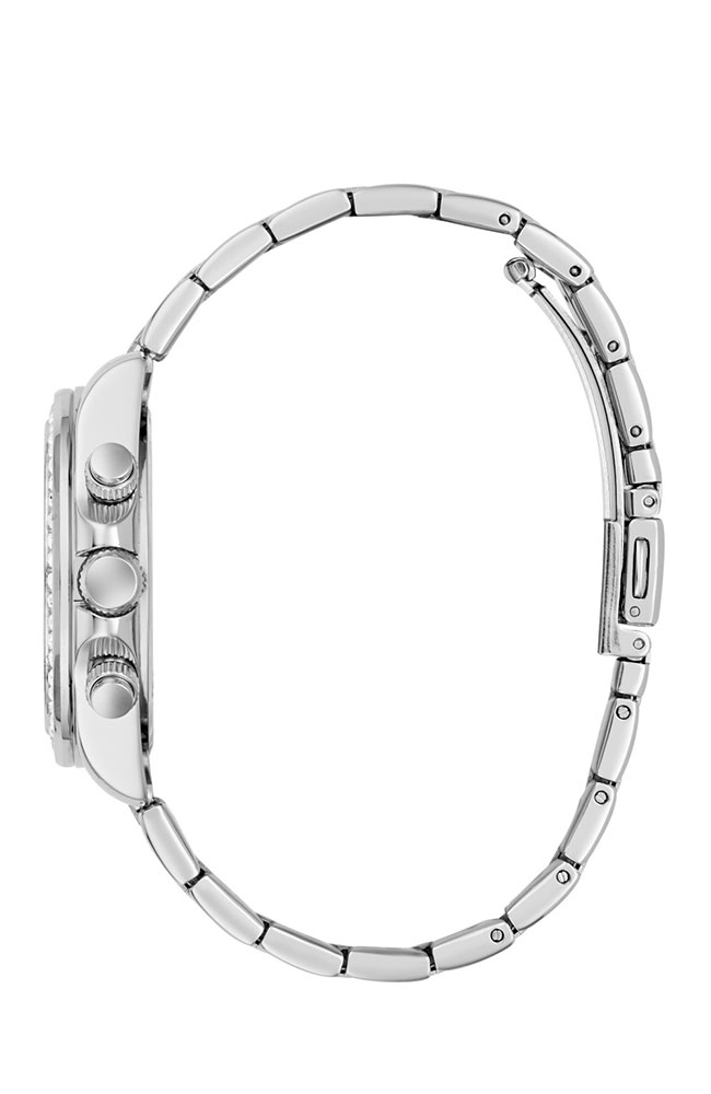 Γυναικείο ρολόι Guess από ανοξείδωτο ατσάλι με ασημί καντράν και μπρασελέ.