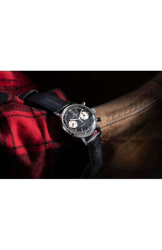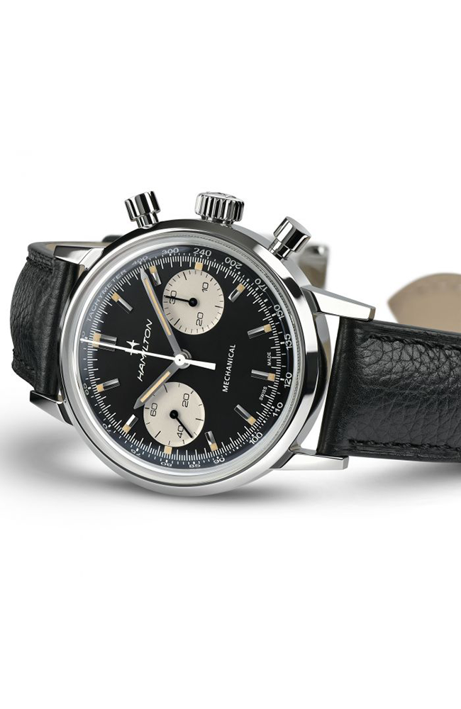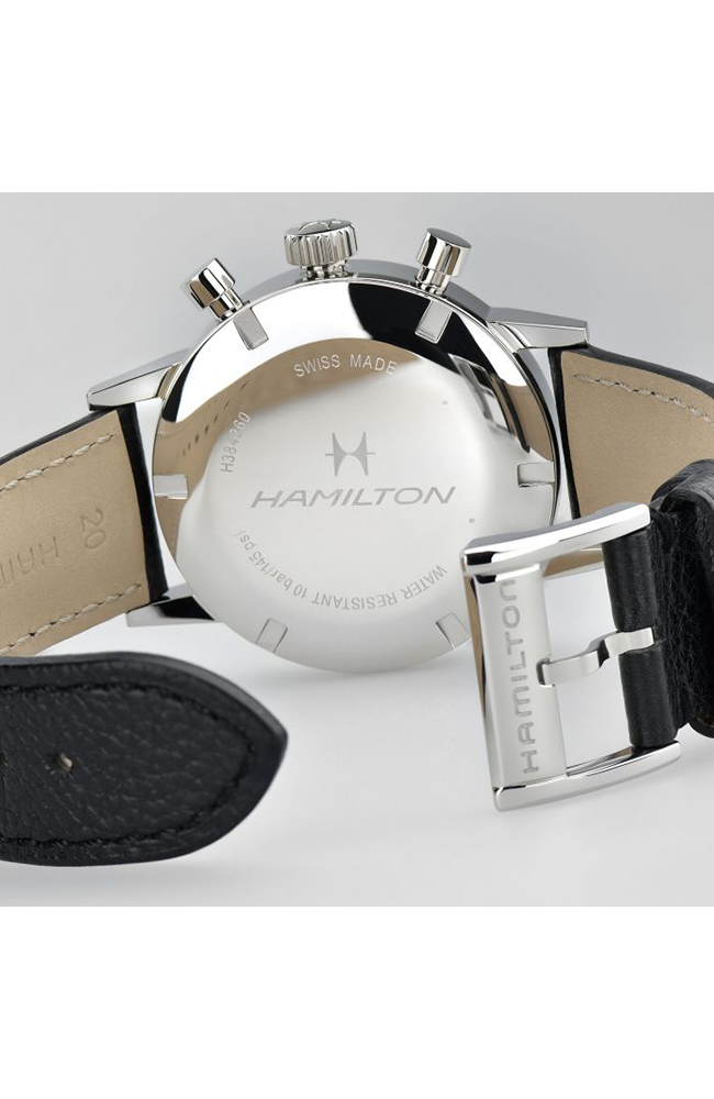 Ανδρικό ρολόι Μηχανικό Hamilton Ελβετικό, από ανοξείδωτο ατσάλι με δίχρωμο καντράν και μαύρο δερμάτινο λουράκι.