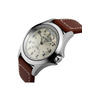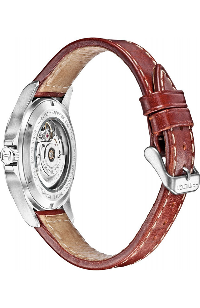 Ανδρικό ρολόι Hamilton Αυτόματο Ελβετικό, από ανοξείδωτο ατσάλι με μπεζ καντράν και καφέ δερμάτινο λουράκι.