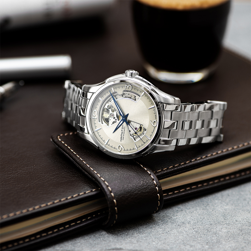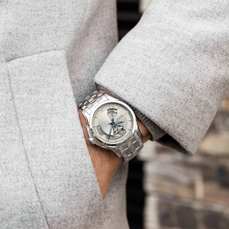 Ανδρικό ρολόι Hamilton ελβετικής κατασκευής με αυτόματο μηχανισμό, από ανοξείδωτο ατσάλι με ασημί καντράν και μπρασελέ.