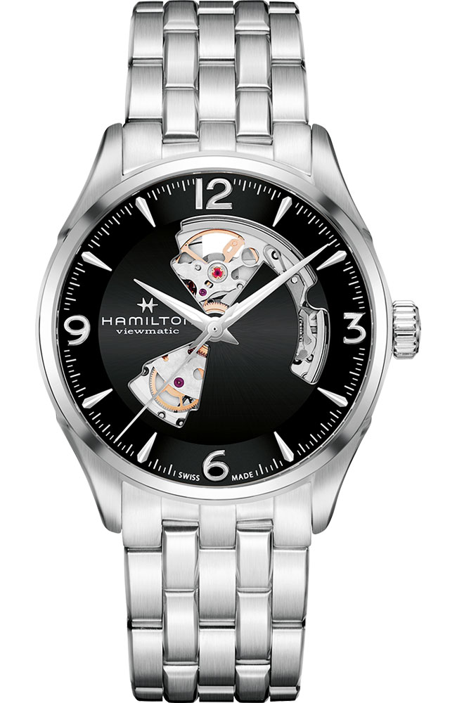 Ανδρικό ρολόι Hamilton ελβετικής κατασκευής με αυτόματο μηχανισμό, από ανοξείδωτο ατσάλι με μαύρο καντράν και μπρασελέ.