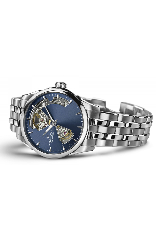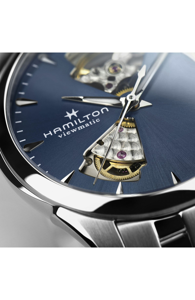 Γυνακείο ρολόι Hamilton ελβετικής κατασκευής με αυτόματο μηχανισμό, από ανοξείδωτο ατσάλι με μπλε καντράν και μπρασελέ.