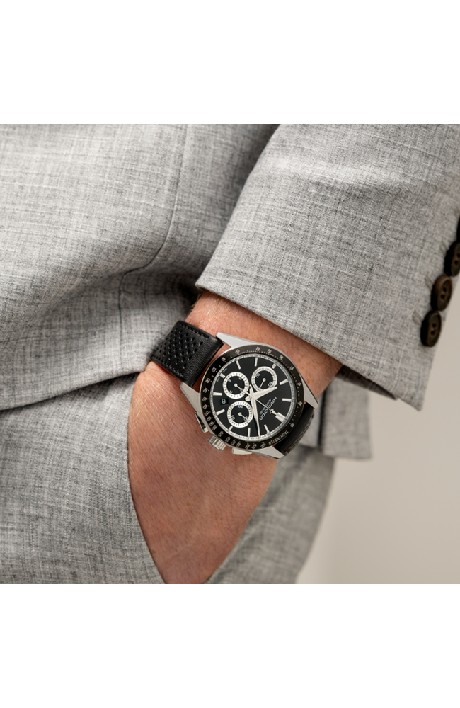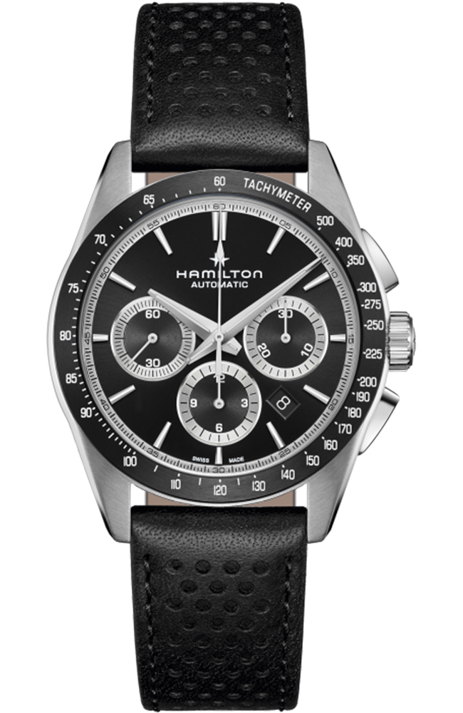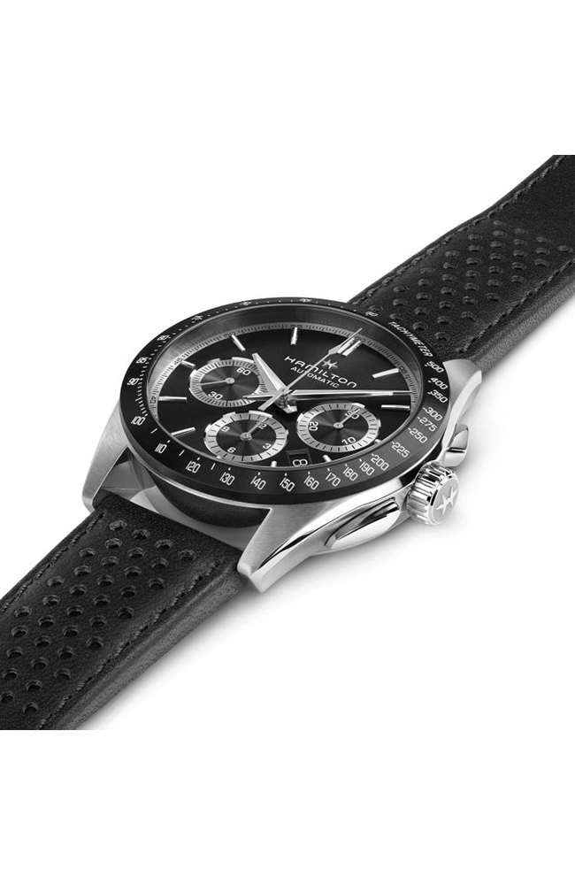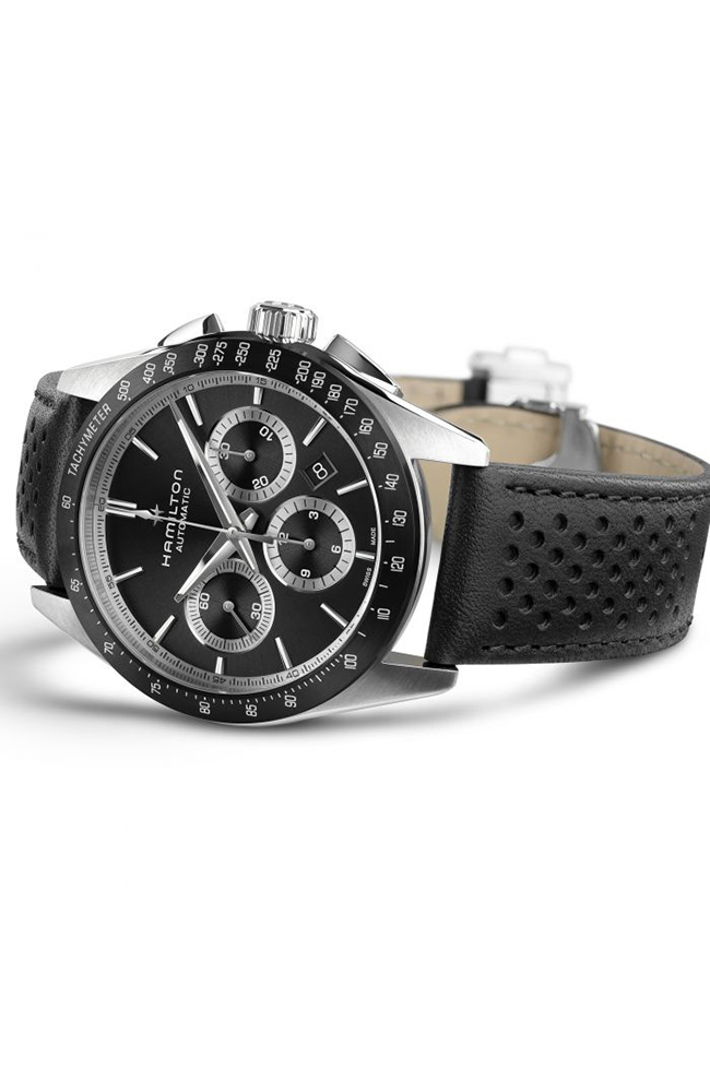 Ανδρικό ρολόι Hamilton Αυτόματος Ελβετικός μηχανισμός, από ανοξείδωτο ατσάλι με μαύρο καντράν και δερμάτινο λουράκι.