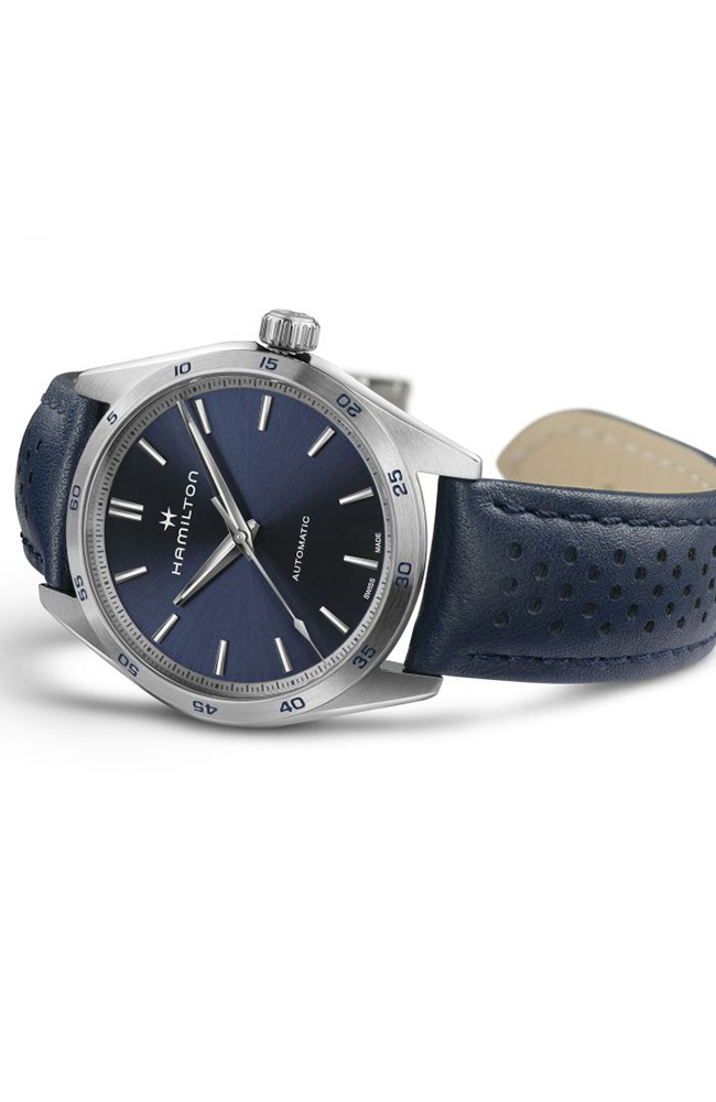 Ανδρικό ρολόι Hamilton Αυτόματος Ελβετικός μηχανισμός, από ανοξείδωτο ατσάλι με μπλε καντράν και μπλε δερμάτινο λουράκι.