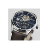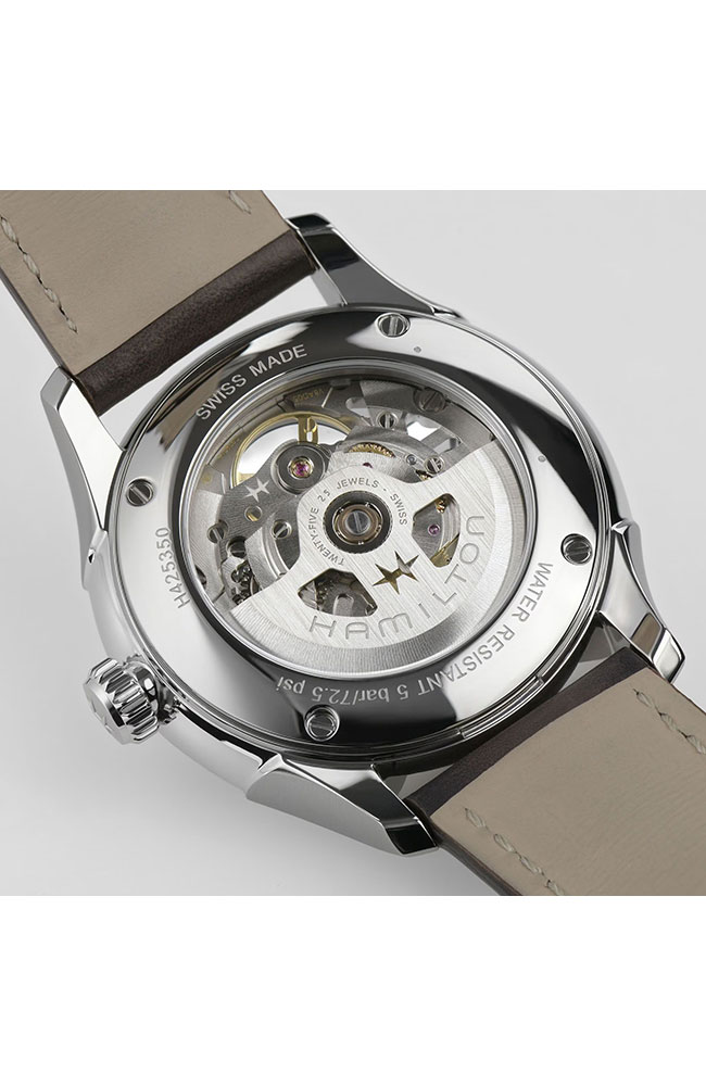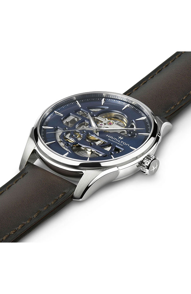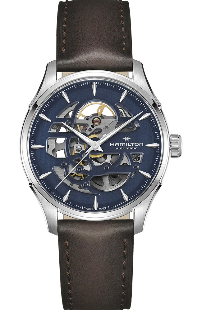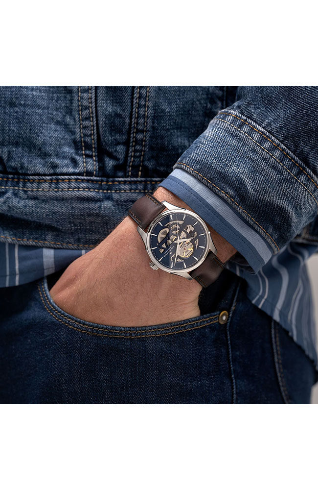 Ανδρικό ρολόι Hamilton Αυτόματο Ελβετικό, από ανοξείδωτο ατσάλι με μπλε καντράν και καφέ δερμάτινο λουράκι.