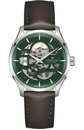 Ανδρικό ρολόι Hamilton Αυτόματο Ελβετικό, από ανοξείδωτο ατσάλι με ασημί καντράν και πράσινο δερμάτινο λουράκι.