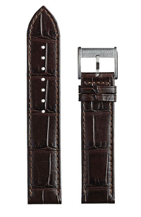 Ανδρικό ρολόι Hamilton ελβετικής κατασκευής με αυτόματο μηχανισμό, από ανοξείδωτο ατσάλι με λευκό καντράν και καφέ δερμάτινο λουράκι.