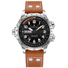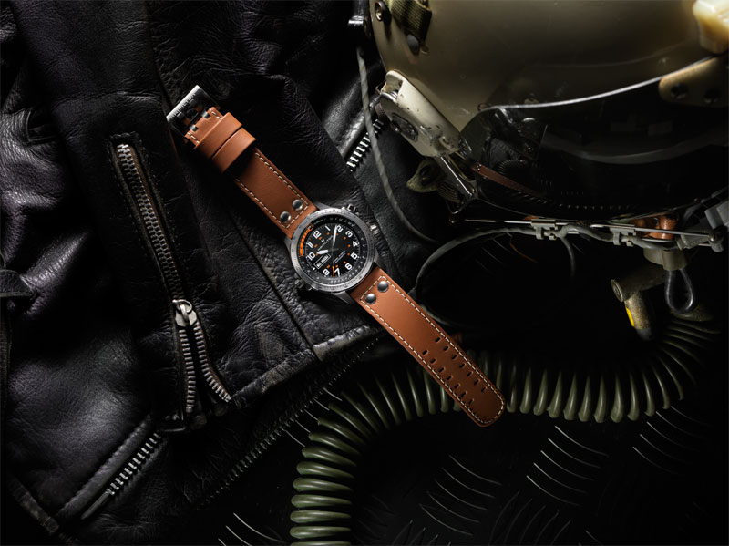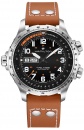 Ανδρικό ρολόι Hamilton με αυτόματο ελβετικό μηχανισμό, από ανοξείδωτο ατσάλι με μαύρο καντράν και καφέ δερμάτινο λουράκι.
