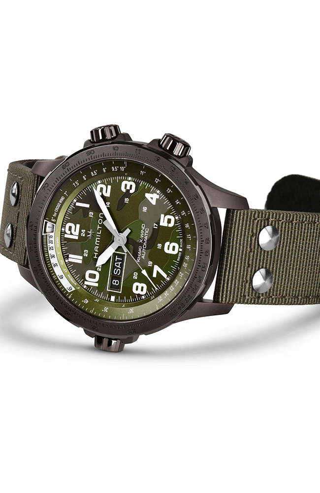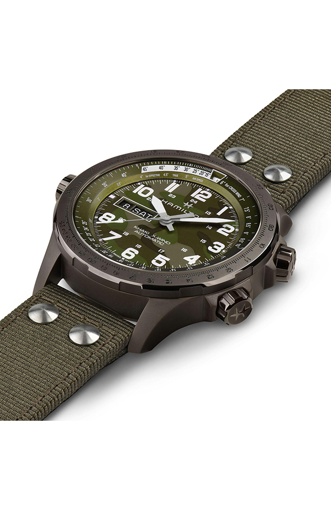 Ανδρικό ρολόι Hamilton Ελβετικό, με αυτόματο μηχανισμό από ανοξείδωτο ατσάλι με παραλλαγή καντράν και υφασμάτινο λουράκι.