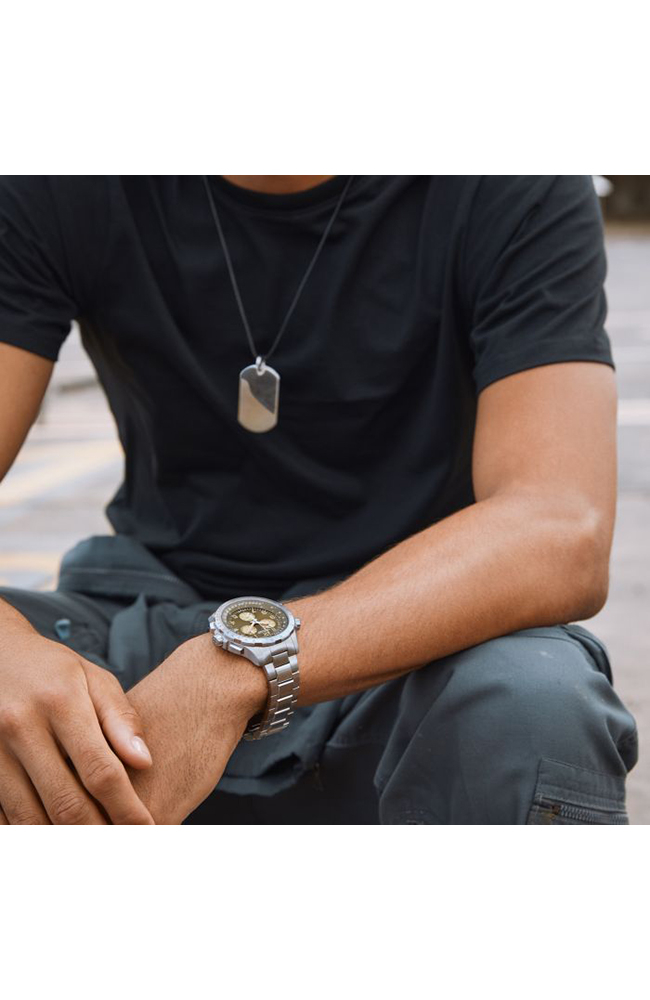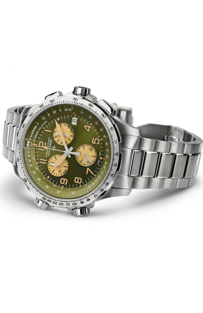 Ανδρικό ρολόι Hamilton Ελβετικός Χρονογράφος, από ανοξείδωτο ατσάλι με δίχρωμο καντράν και μπρασελέ.