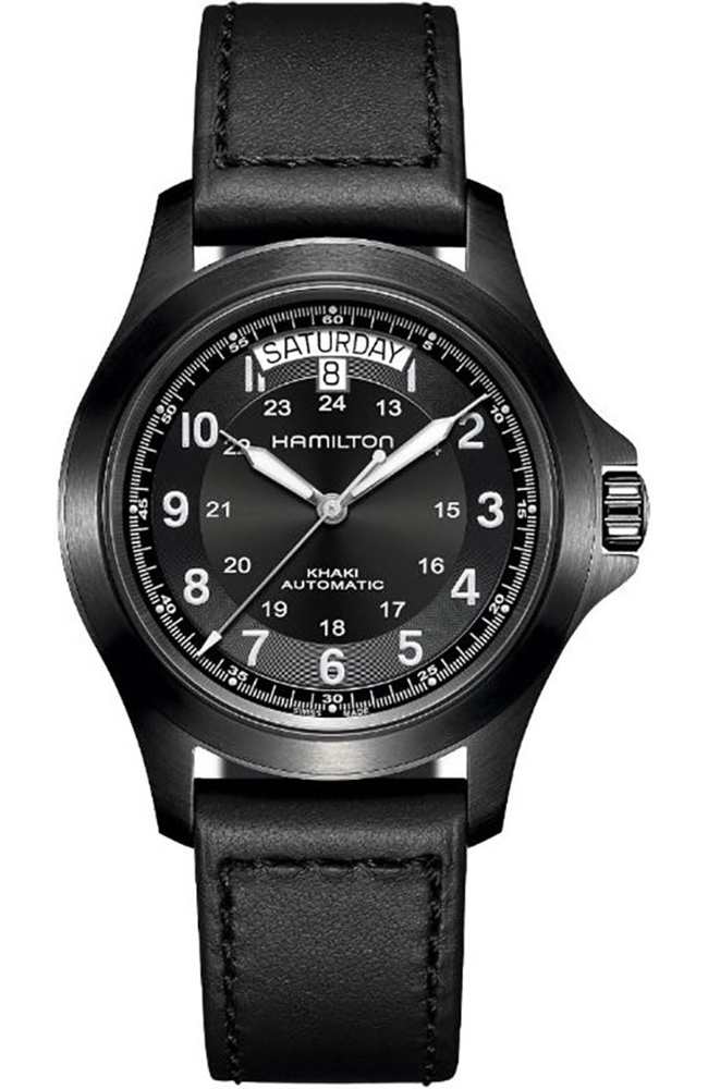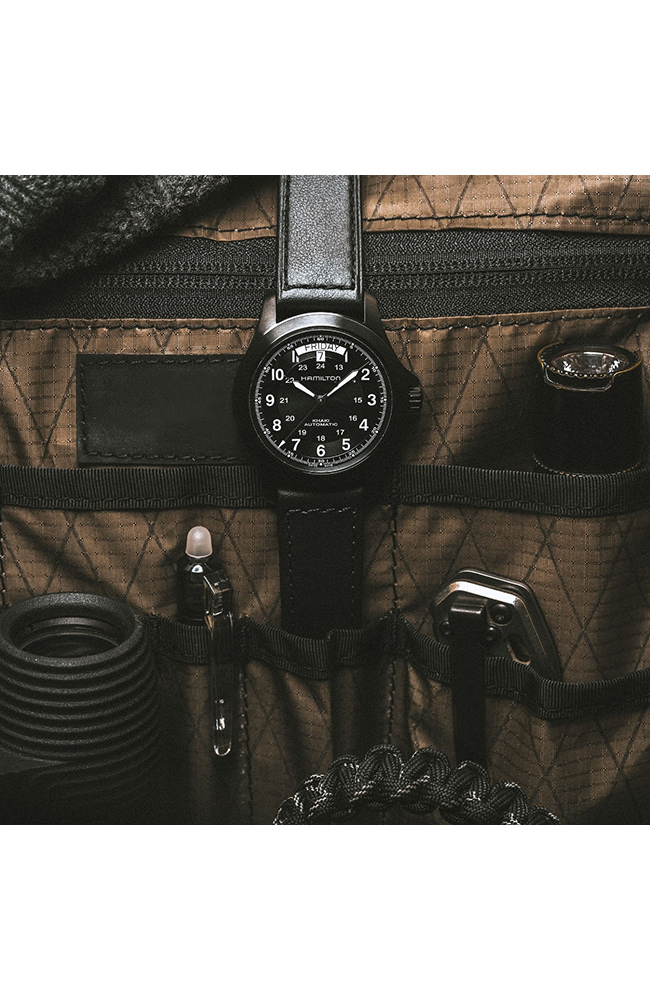 Ανδρικό ρολόι Hamilton Αυτόματο Ελβετικό, από ανοξείδωτο ατσάλι με μαύρο καντράν και δερμάτινο λουράκι.