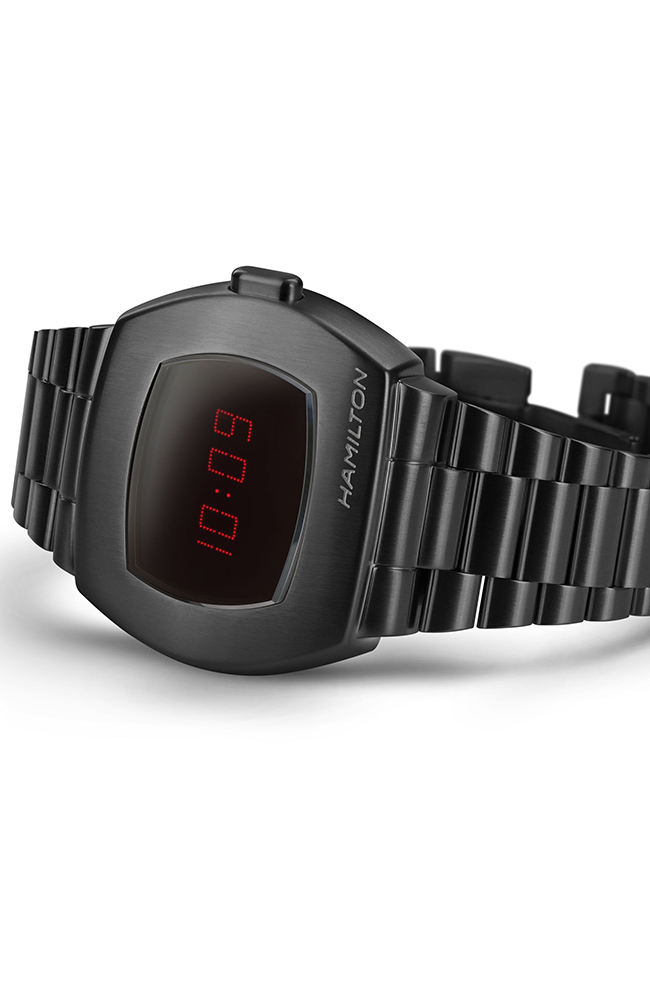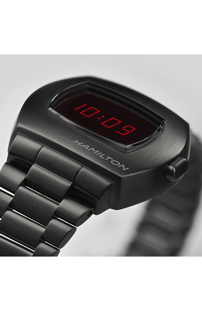 Ανδρικό ρολόι Hamilton Ελβετικό από ανοξείδωτο ατσάλι με ψηφιακό καντράν και μπρασελέ.