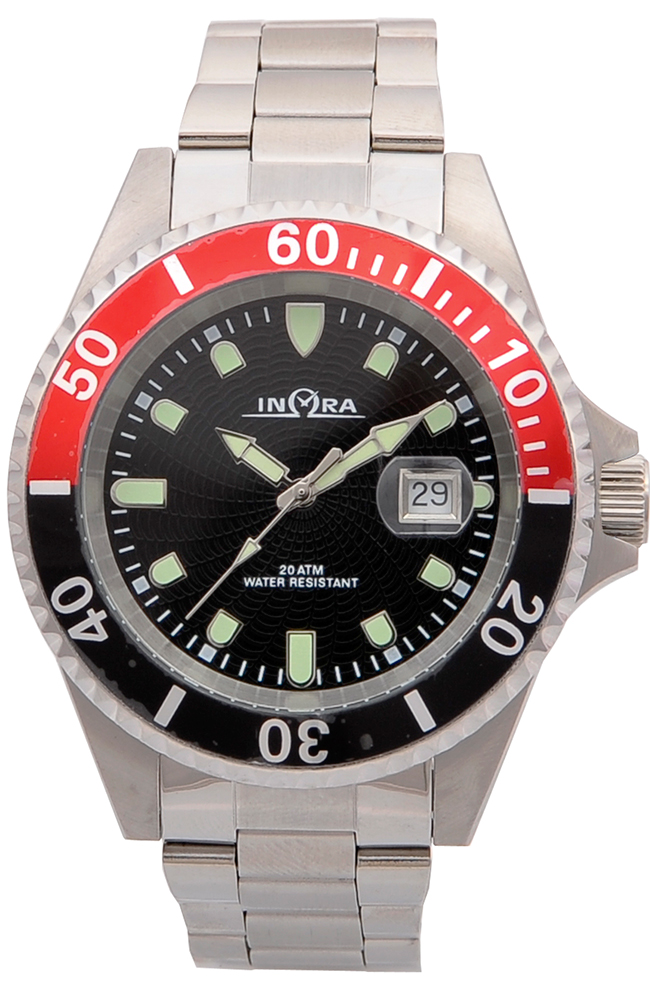 Ανδρικό ρολόι Inora από ανοξείδωτο ατσάλι με μαύρο καντράν και μπρασελέ.