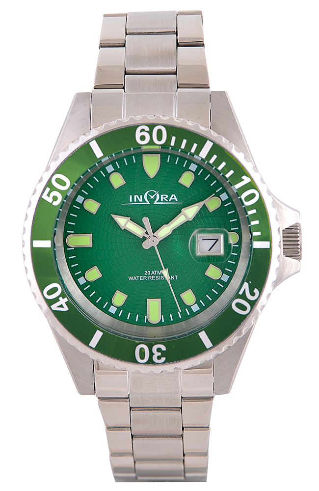 Ανδρικό ρολόι Inora από ανοξείδωτο ατσάλι με πράσινο καντράν και μπρασελέ.