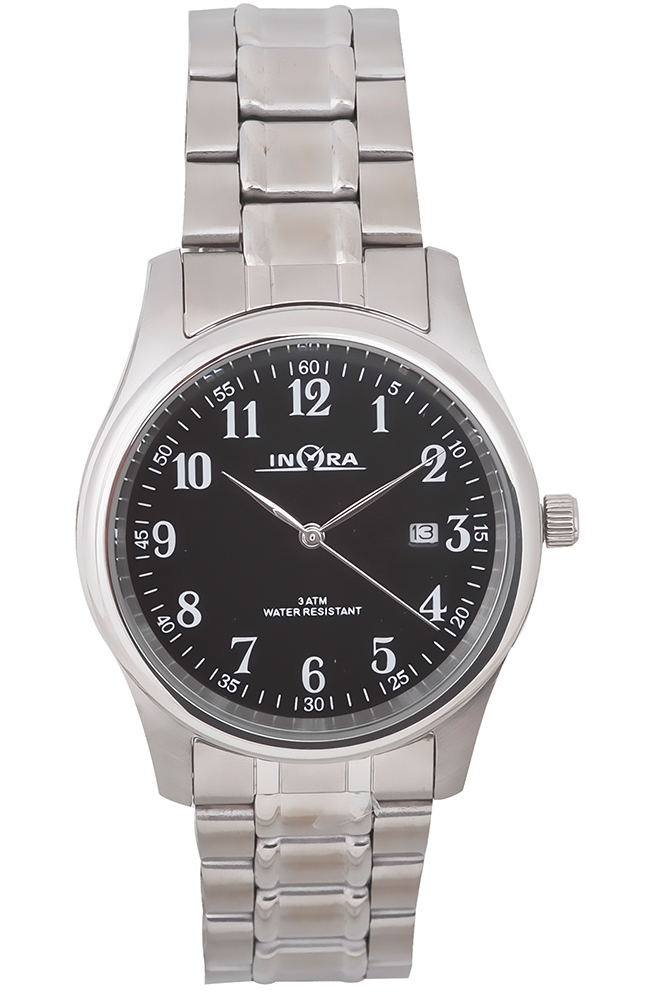 Ανδρικό ρολόι Inora από ανοξείδωτο ατσάλι με μαύρο καντράν και μπρασελέ.