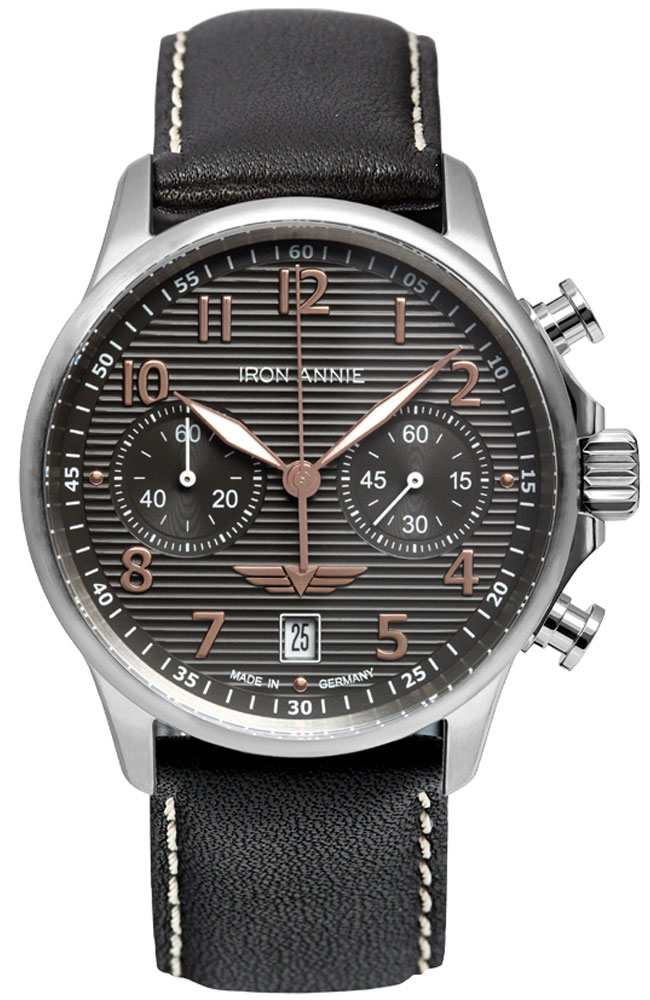 Ανδρικό ρολόι Iron Annie από ανοξείδωτο ατσάλι με μαύρο καντράν και μαύρο δερμάτινο λουράκι.