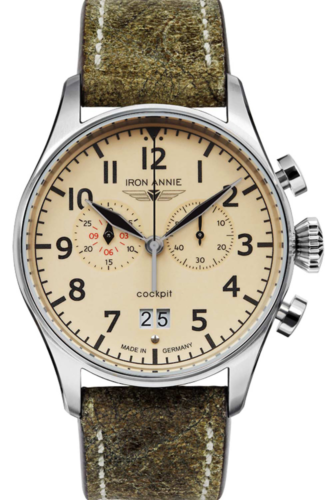 Ανδρικό ρολόι Iron Annie από ανοξείδωτο ατσάλι με μπεζ καντράν και καφέ δερμάτινο λουράκι.