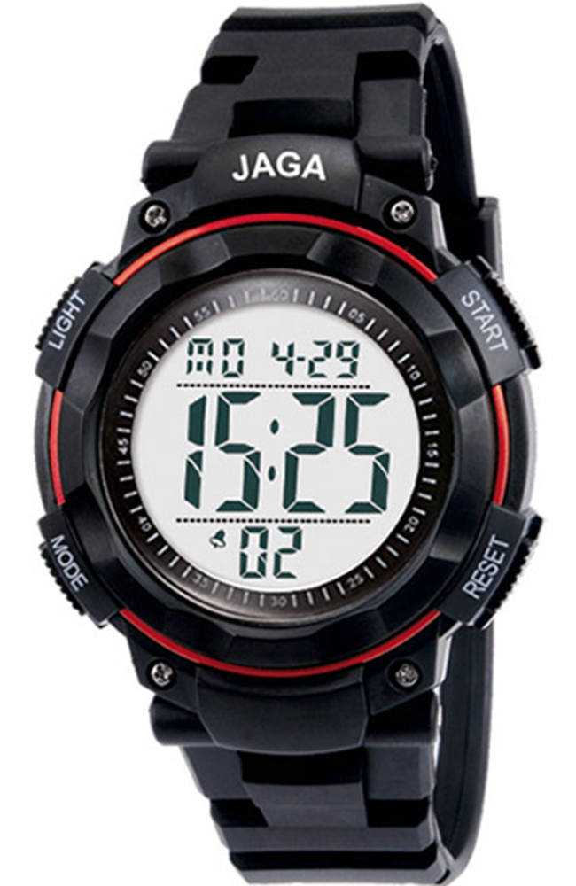 Ανδρικό ρολόι χειρός JAGA με ψηφιακό καντράν και μαύρο καουτσούκ λουράκι.
