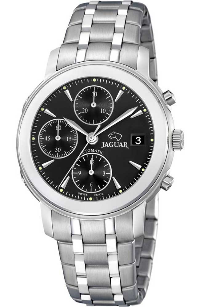 Ανδρικό ρολόι Jaguar Ελβετικής κατασκευής από ανοξείδωτο ατσάλι με μαύρο καντράν και μπρασελέ.