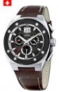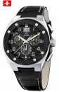 Ανδρικό ρολόι Jaguar Ελβετικής κατασκευής από ανοξείδωτο ατσάλι με μαύρο καντράν και δερμάτινο λουράκι.