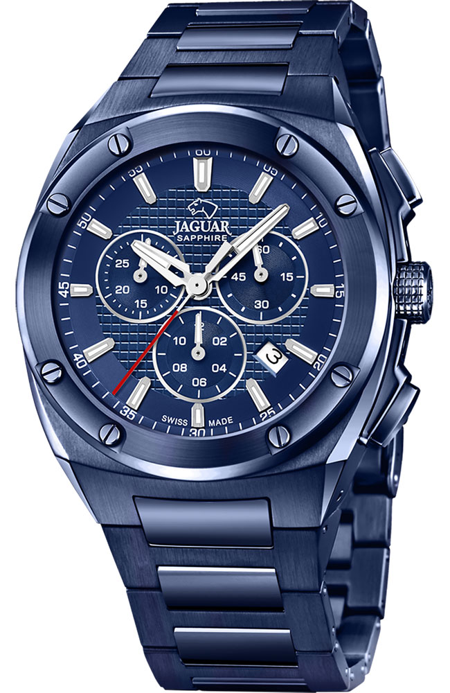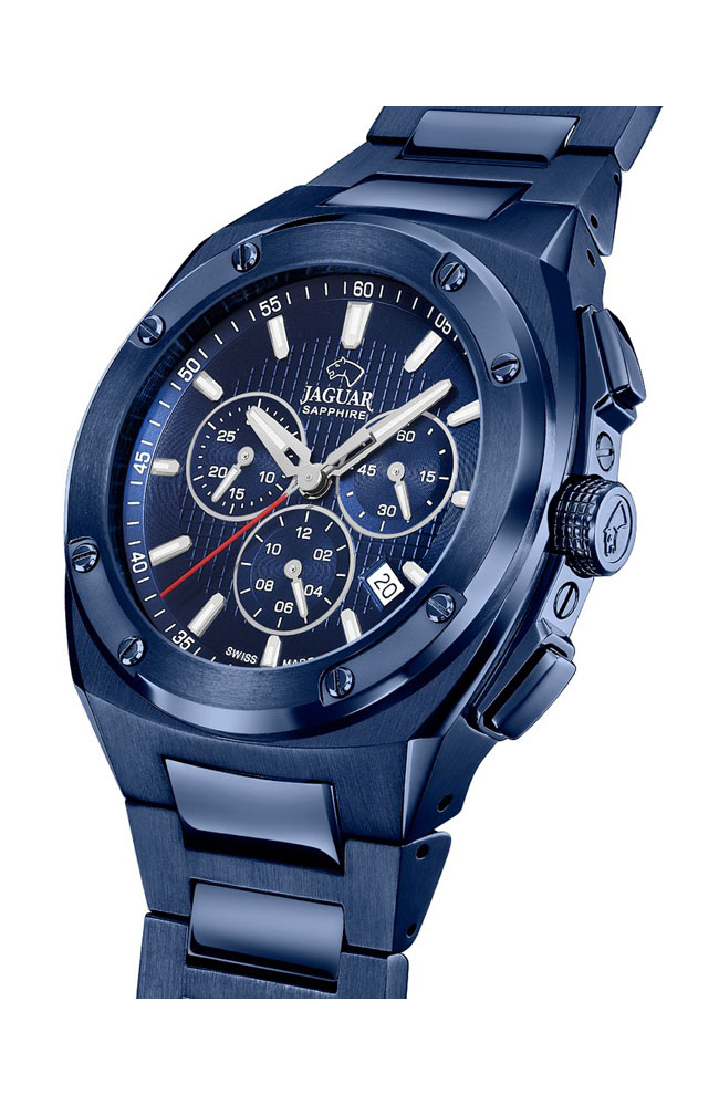 Ανδρικό ρολόι Χρονογράφος Jaguar Ελβετικής κατασκευής από μπλε ανοξείδωτο ατσάλι με μπλε καντράν και μπλε μπρασελέ.