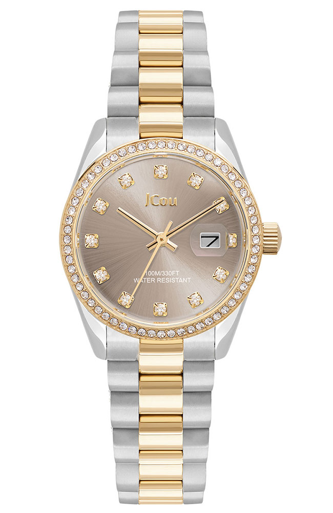 Γυναικείο ρολόι χειρός JCOU από ανοξείδωτο ατσάλι με μπεζ καντράν και μπρασελέ.