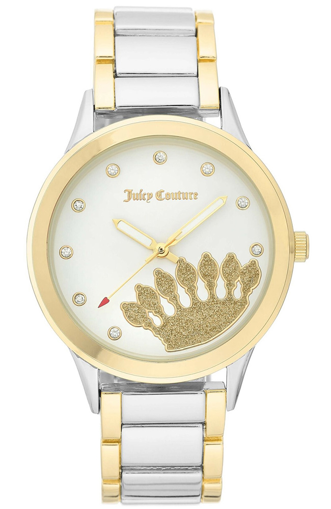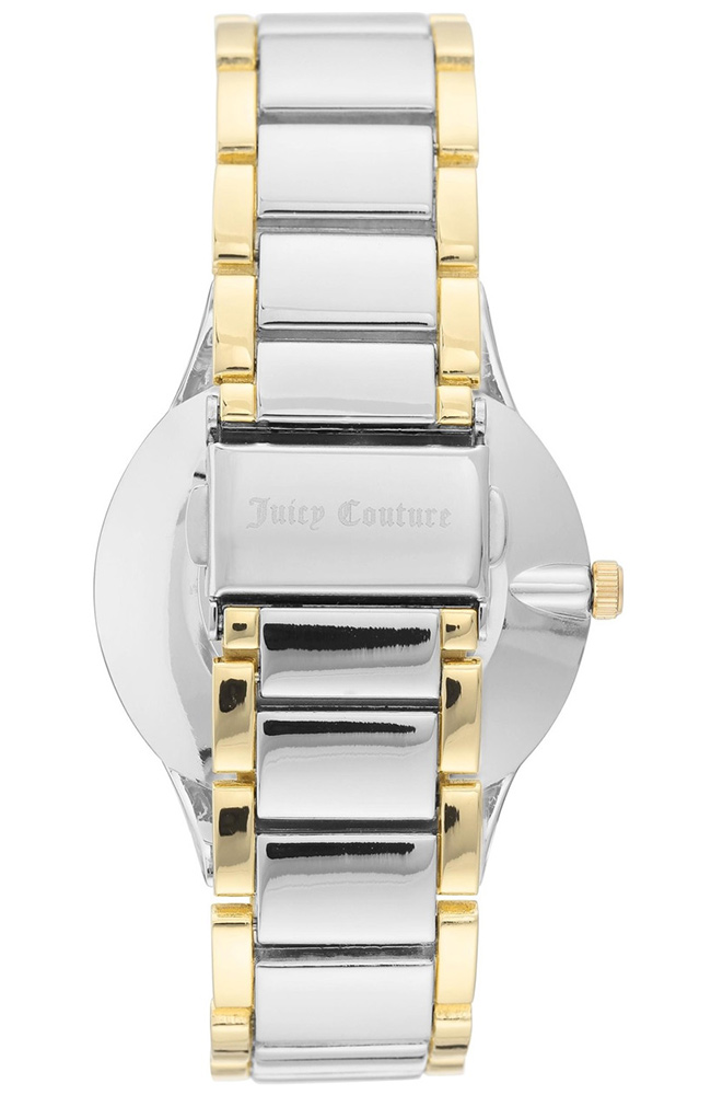 Γυναικείο ρολόι Juicy Couture από ανοξείδωτο ατσάλι με δίχρωμο καντράν, πέτρες Ζιργκόν και μπρασελέ.