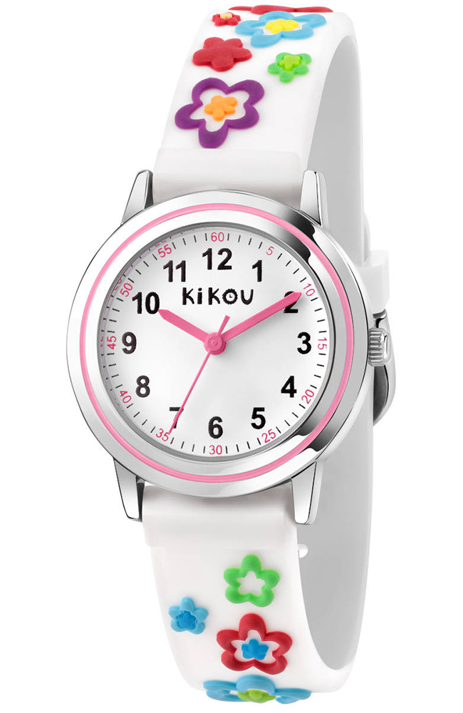 Παιδικό ρολόι KIKOU με λευκό καντράν και καουτσούκ λουράκι.