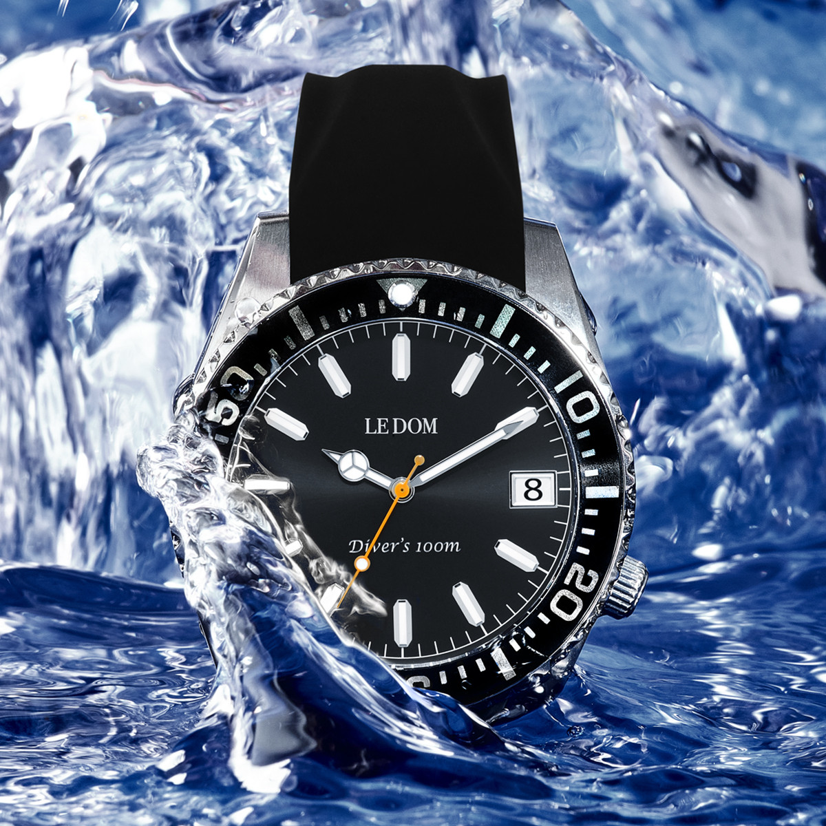 Ανδρικό ρολόι χειρός Le Dom από ανοξείδωτο ατσάλι με μαύρο καντράν και μαύρο καουτσούκ λουράκι.