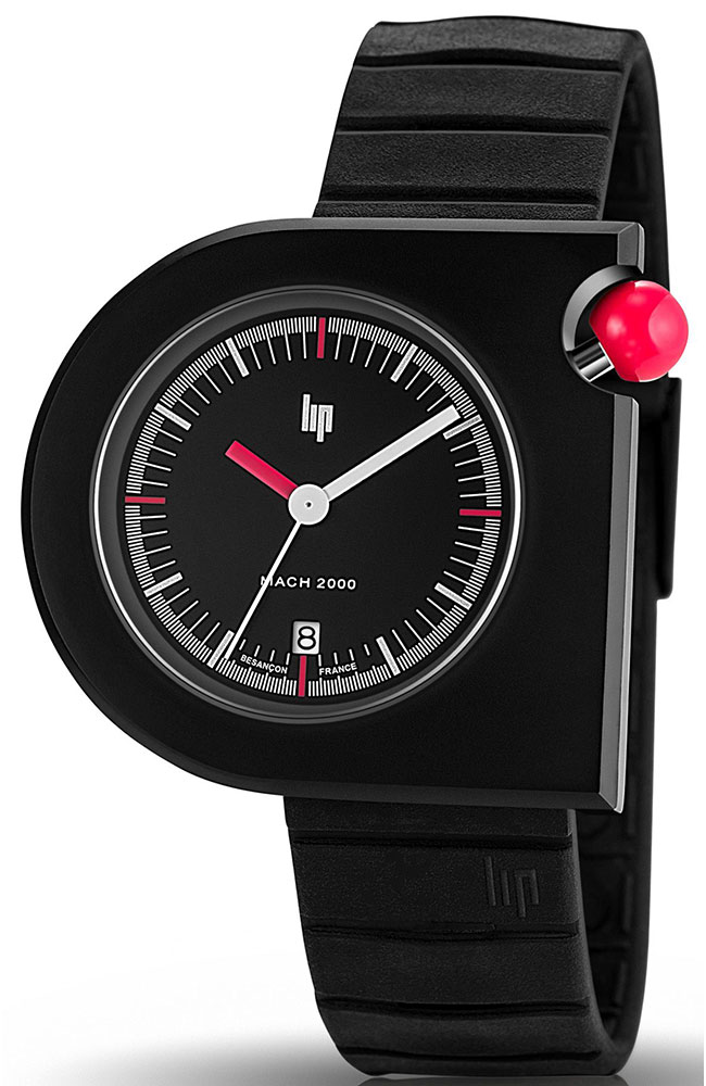 Ανδρικό ρολόι Lip από μαύρο ανοξείδωτο ατσάλι με μαύρο καντράν και καουτσούκ λουράκι.
