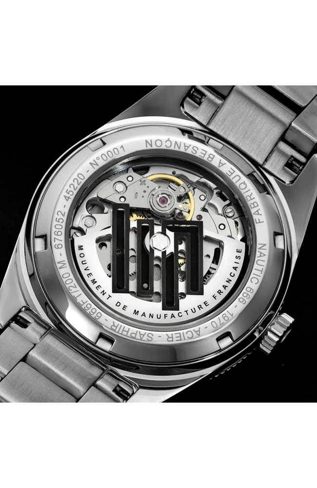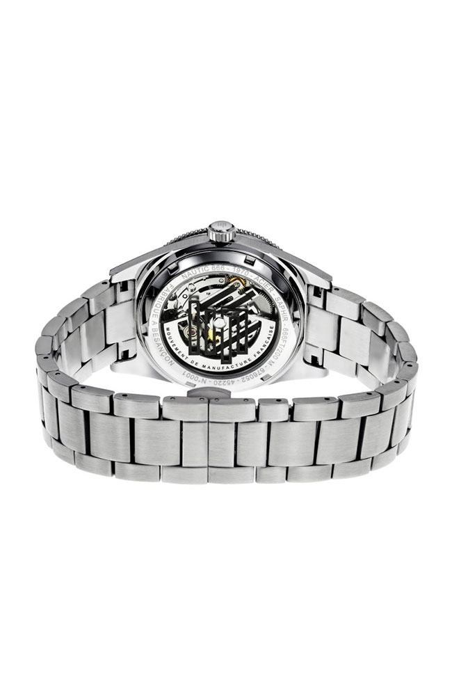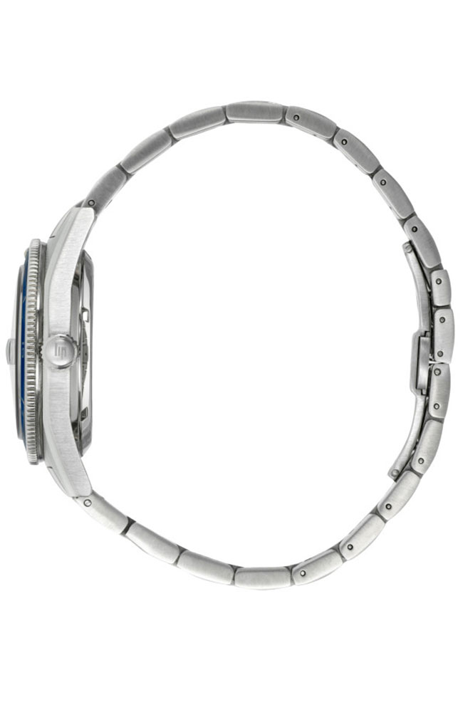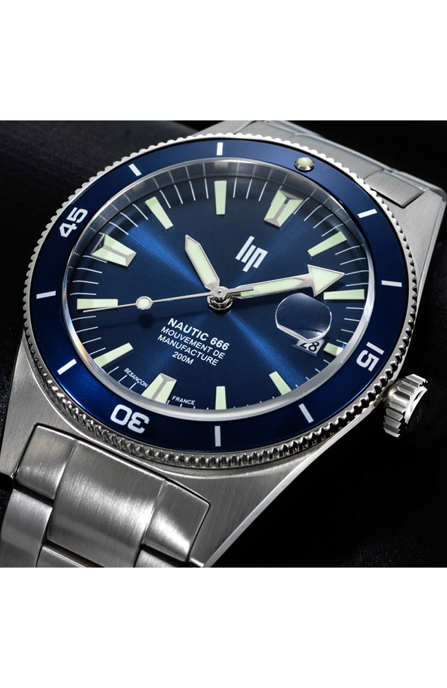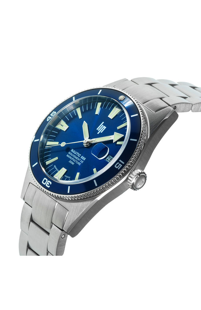 Ανδρικό ρολόι Lip με αυτόματο μηχανισμό από ανοξείδωτο ατσάλι με μπλε καντράν και ασημί μπρασελέ.