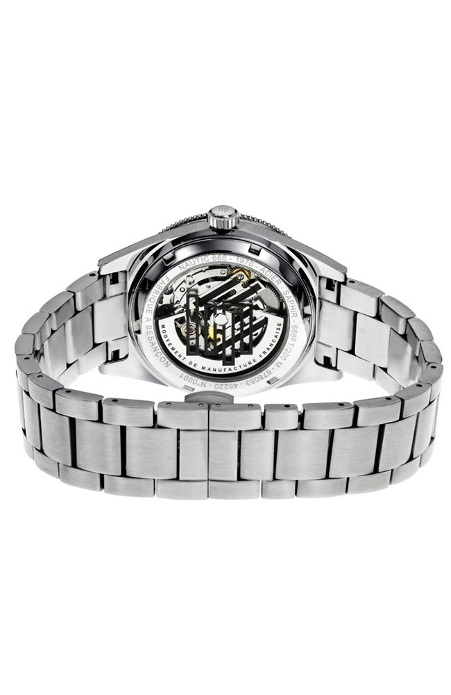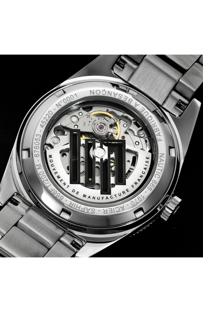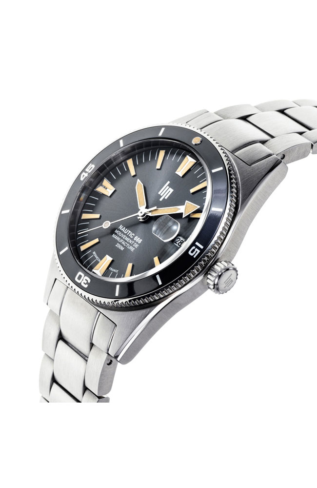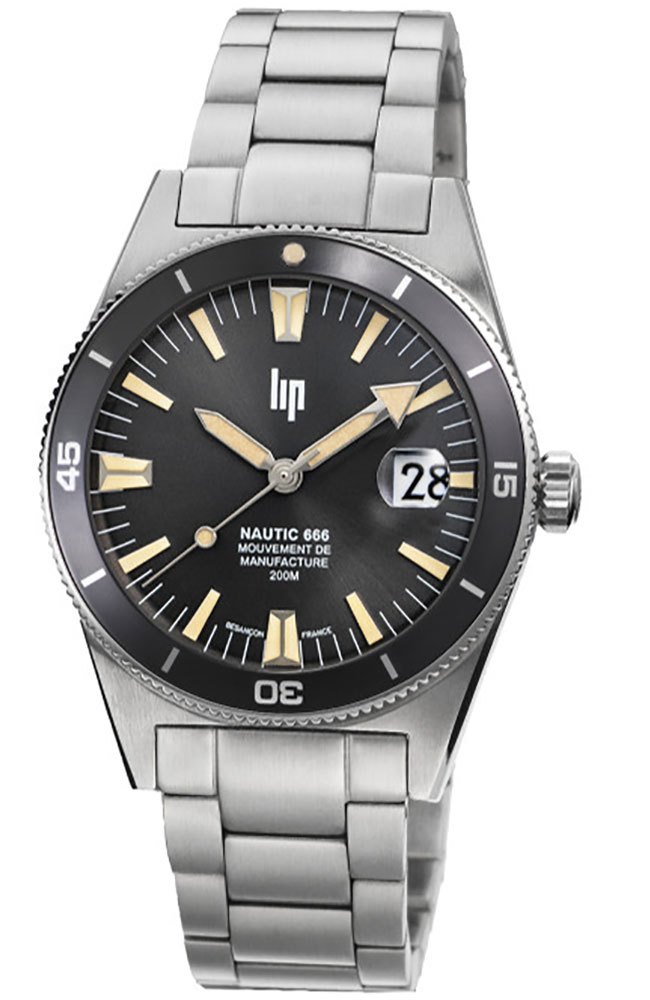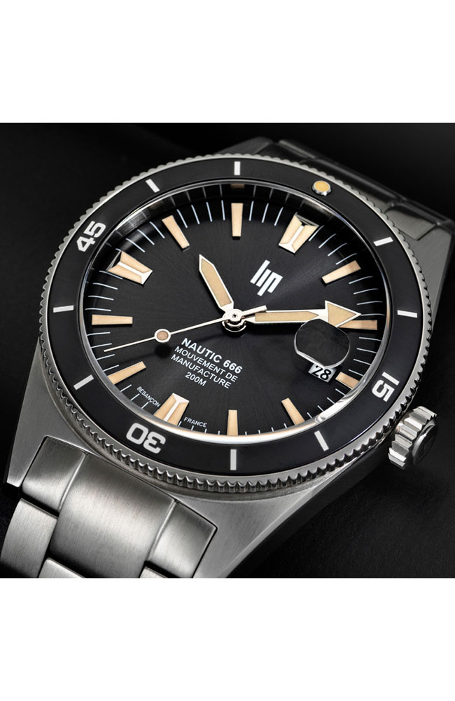 Ανδρικό ρολόι Lip με αυτόματο μηχανισμό από ανοξείδωτο ατσάλι με μαύρο καντράν και ασημί μπρασελέ.