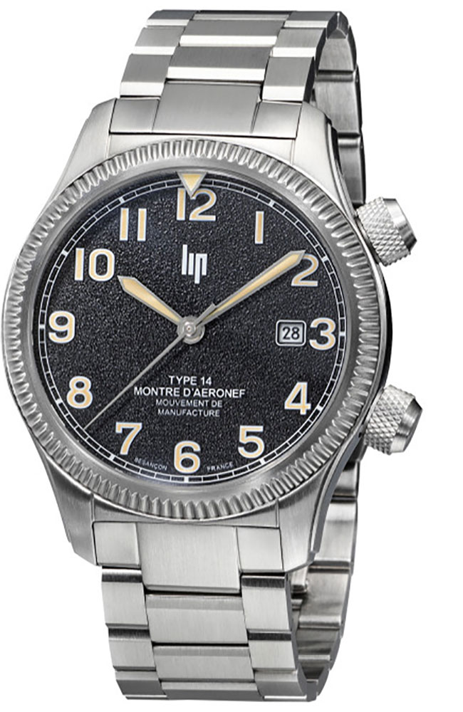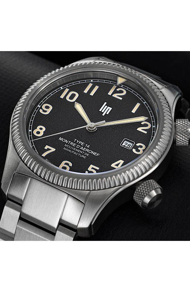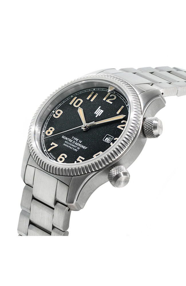 Ανδρικό ρολόι Lip με αυτόματο μηχανισμό από ανοξείδωτο ατσάλι με μαύρο καντράν και μπρασελέ.