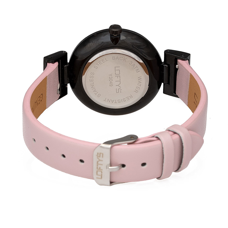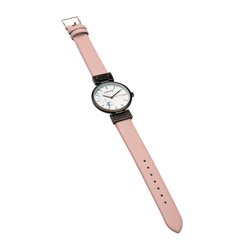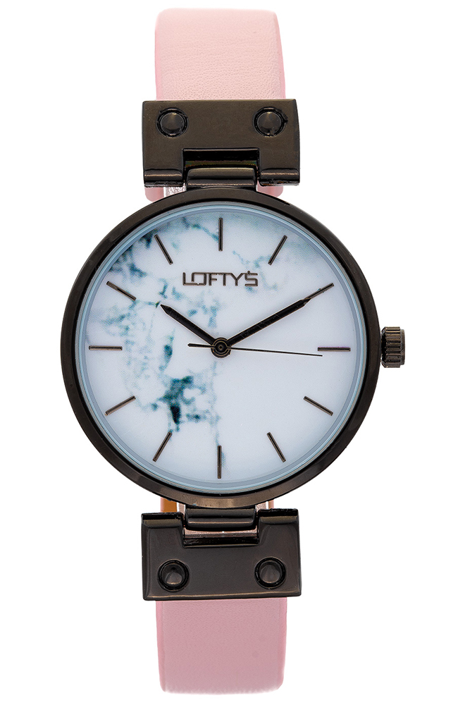 Γυναικείο ρολόι Loftys με λευκό καντράν και ροζ δερμάτινο λουράκι.