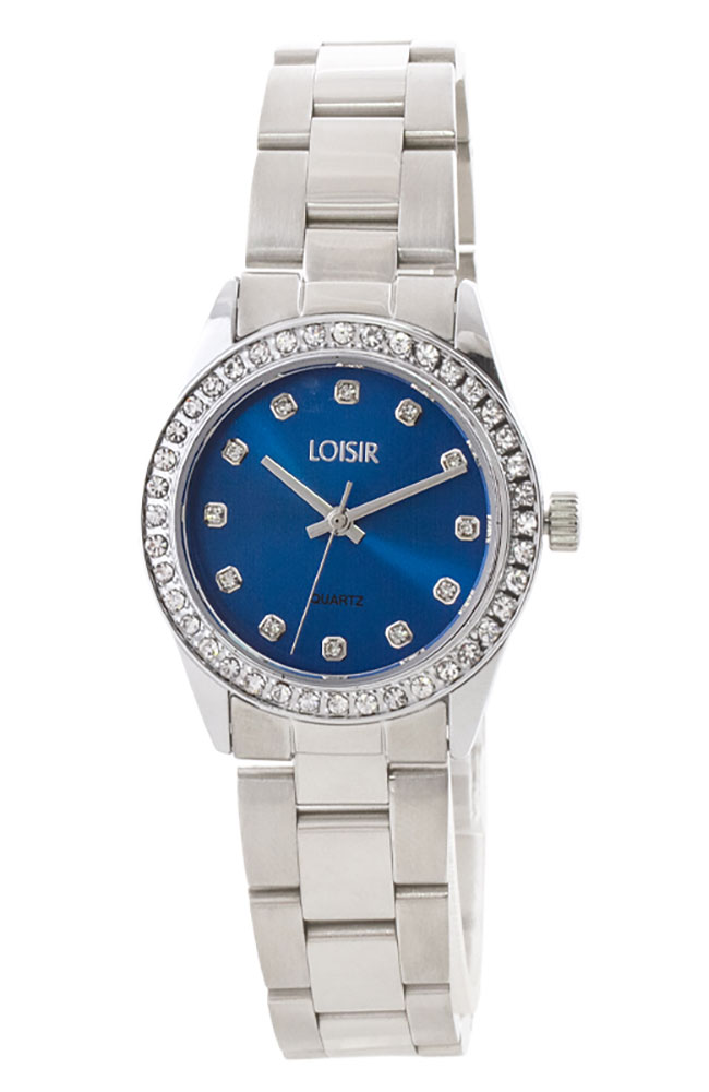 Γυναικείο ρολόι Loisir με μπλε καντράν, πέτρες Ζιργκόν και ασημί μπρασελέ.