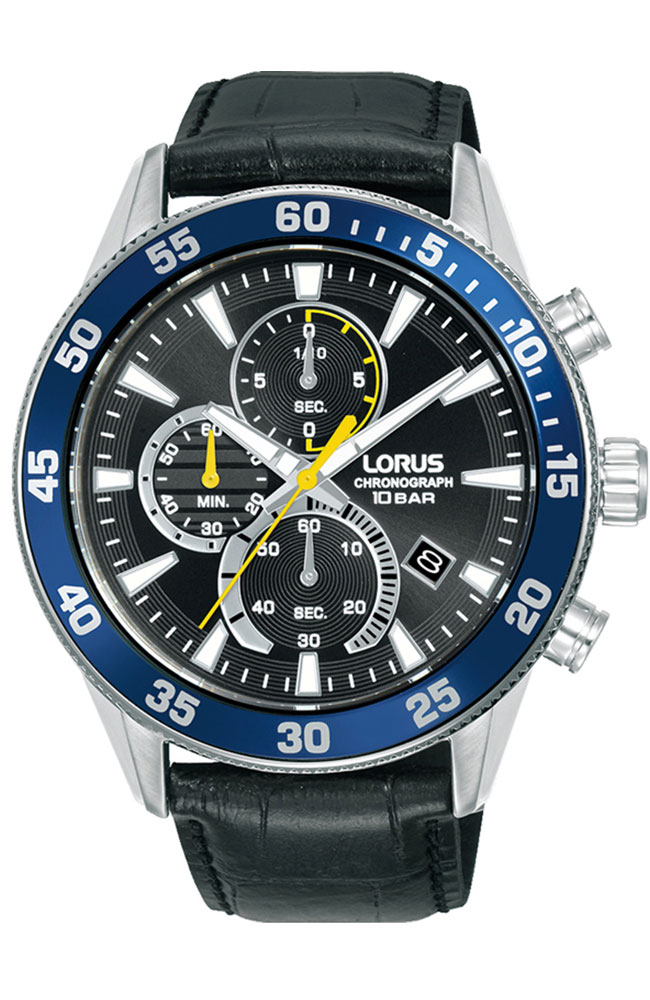 Ανδρικό Ρολόι Lorus από ανοξείδωτο ατσάλι με μαύρο καντράν και δερμάτινο λουράκι.