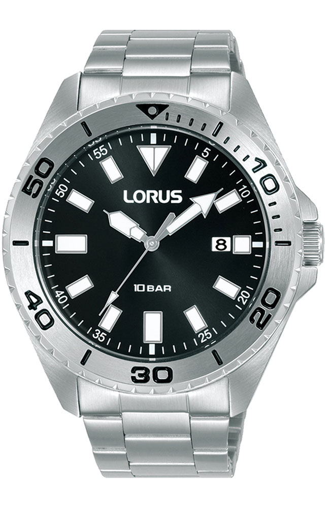 Ανδρικό Ρολόι Χρονογράφος Lorus με μαύρο καντράν και μπρασελέ.