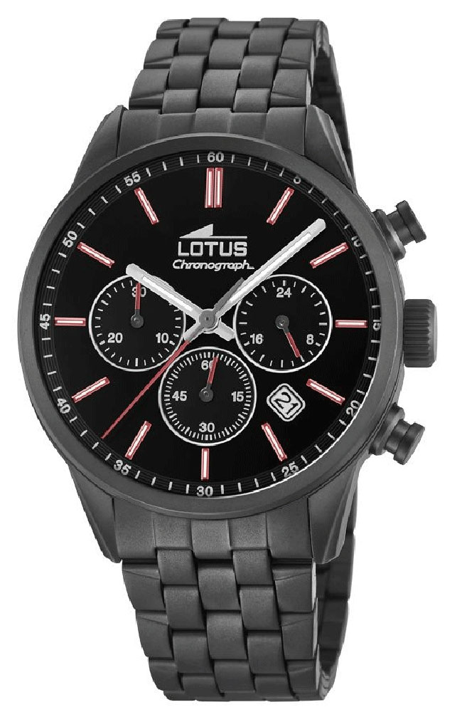 Ανδρικό ρολόι χειρός Lotus από ανοξείδωτο ατσάλι με μαύρο καντράν και μπρασελέ.