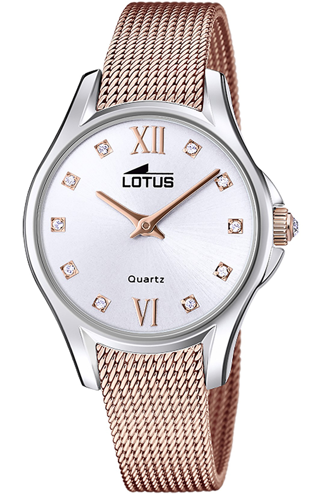 Γυναικείο ρολόι χειρός Lotus από ανοξείδωτο ατσάλι με ασημί καντράν, με πέτρες ζιργκόν και μπρασελέ.
